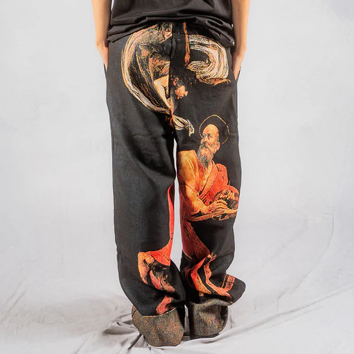 Designed by Raf Reyes: the goat's painting i.e Caravaggio’s “Inspiration of Saint Matthew” 🖼️ wherein divine ᵥrevelation crashes into scripture 📜~ the angel doesn’t whisper, it pulls ⇄ Saint Matthew, draped in vermilion, doesn’t just write the gospel — he’s drafting legacy *under pressure* 🙏📿 the sacred cuts through stitch ⇄ this isn’t homage, it’s possession | | | issa visual psalm for those who build Heritage from chaos, and style from soul 🧿😤.