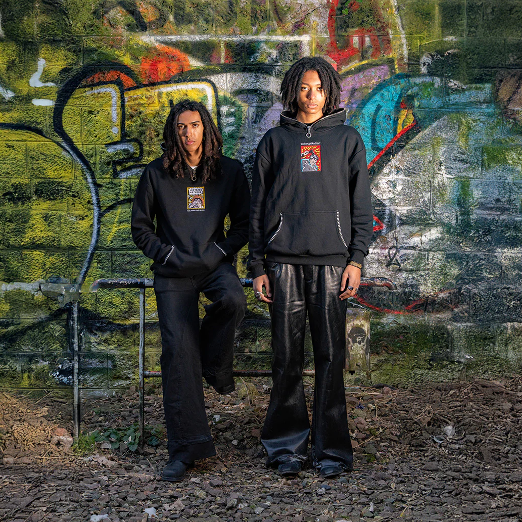 Tech specs: super soft 610gsm loopback french terry (100% combed cotton) fleec'd up on the inside, embroidery @ front, threadwork around kangaroo pockets | | | custom-molded enamel-coated clover (@ back], trademark'd zipper puller @ hood ~