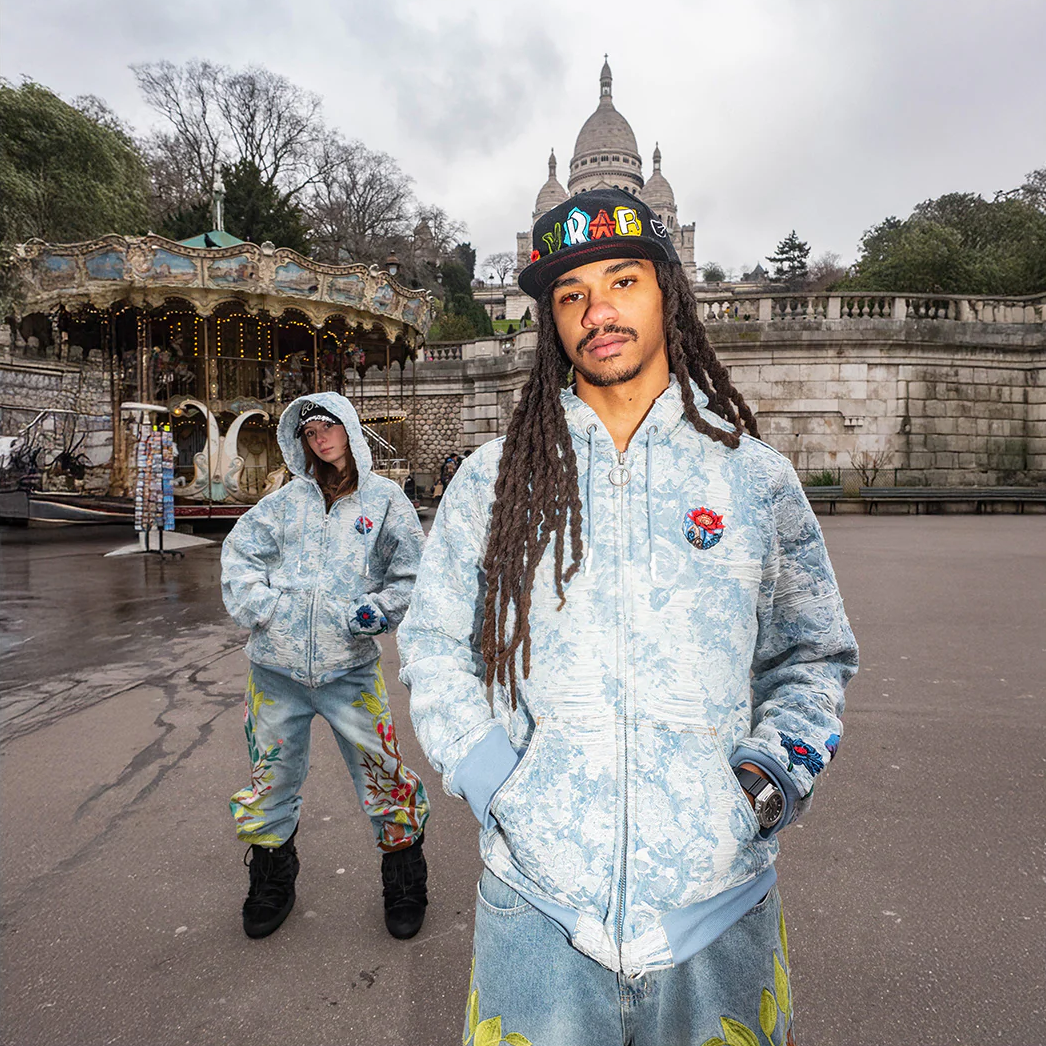 Designed by Raf Reyes: in fashion's intricate world, the 🌹🥀 denim jacquard embodies ᵥresilience, turning thorns into ᵥroses, chaos into art ~ a Black Lotus signals fresh starts from the ᵥruins of the past 𖥸~ this unique trio adorns bold individuals, moving beyond normal to embrace the Extraordinary 💫 [...] in its threads, they share a universal truth: ᵥreal innovation arises from destruction, beauty from ashes ~ destined to shine in VERYRARE™ ✨˚𑁍 ⋆ ⋆。°✩.