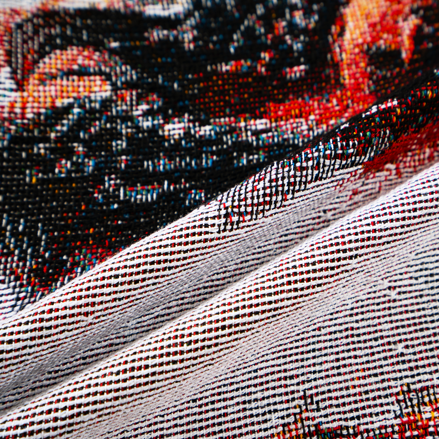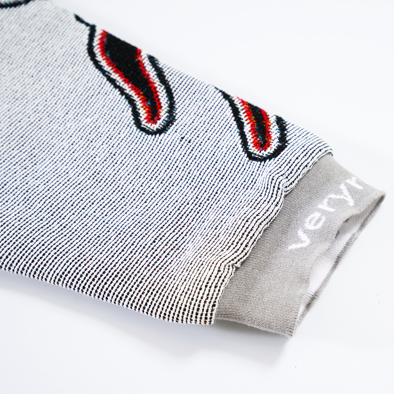 Tech specs: premium jacquard woven tapestry fabric (410gsm polycotton) | | | embroidery (at front) | | | 100% wool ribbings @ sleeves (w/ intarsia logo at cuffs) & neck +++ satin silk lining (inside *fully*).