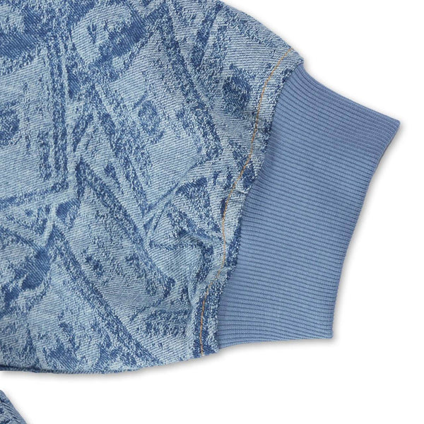 Tech specs: jacquard denim (100% cotton | | | 475gsm/14oz) ~ VERYRARE ""dollar bill$"" motif incorporates a subtle texturing (& softness), while the fabric has been worked & dyed to give a worn-in effect [...] custom-molded branded zipper puller, embroideries @ front & back 🌹~ this piece can be worn with matching pants for a total look 👖.