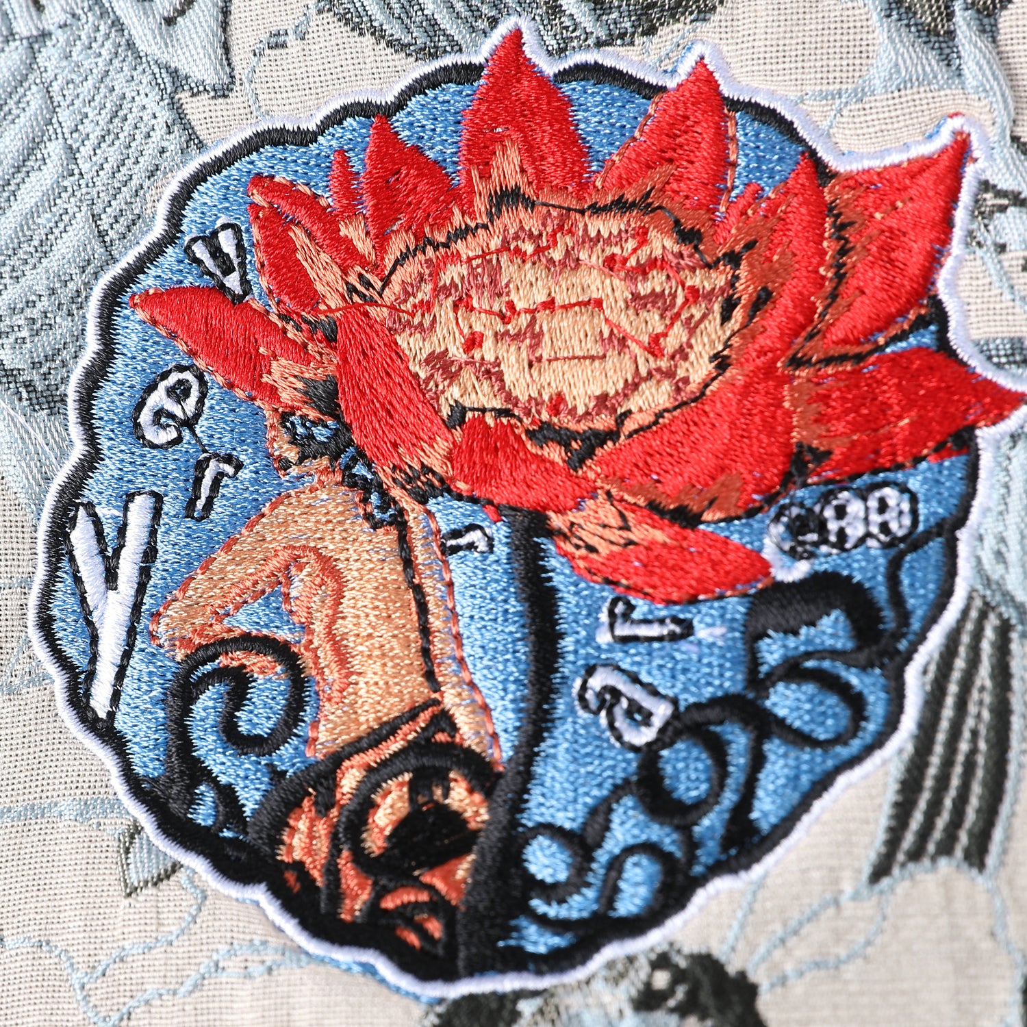 Designed by Raf Reyes: frostbite is winter ᵥromance with a blade under the sleeve⚔️⇄ florals drifting like snowed-over memories — quiet, detailed, almost innocent 🥀___ the chest emblem 'dark lotus' low-key a compass, flaring like a wound that refuses to close :: find the light, follow the lake woman embroidered on the patch 💮:: it’s the calm after the storm, when the streets are silent and your heartbeat is the loudest thing alive ⇄ this piece doesn’t scream, it chills ❄️ zip it up and move through the cold like you own it: unbent, unbound, unbroken 🥶.
