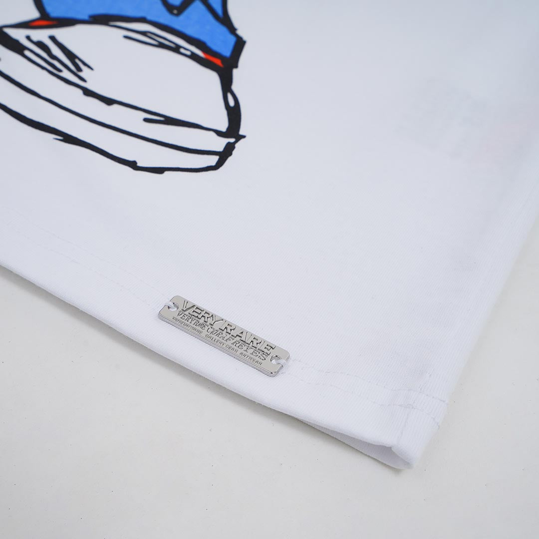 Tech specs: 100% cotton [210gsm | | | bio-washed | | | softest handfeel producible], discharge prints (fusing naturally with the fabric) ⇄ non-plasticky ⇄ super cushy/comfortable to the touch | custom-molded metal tag at bottom.