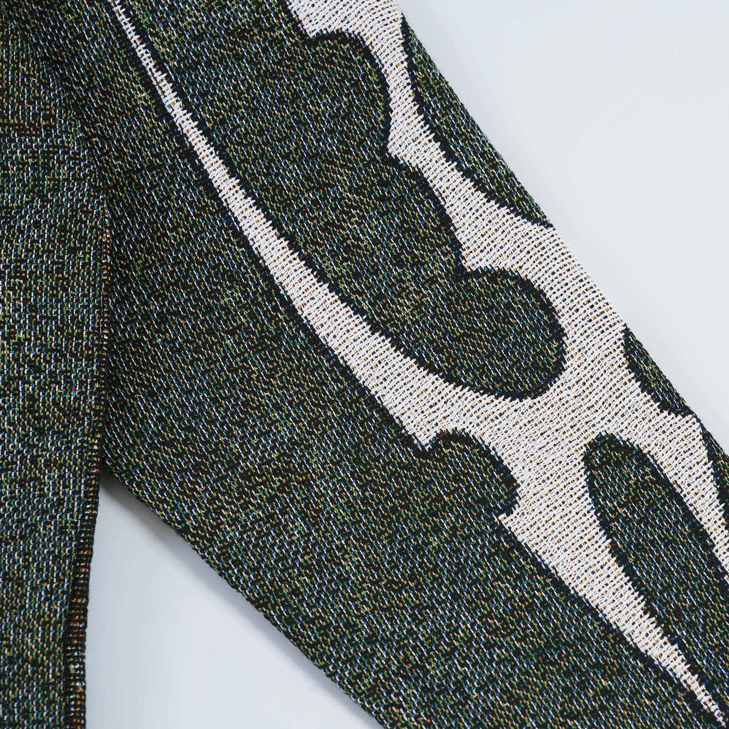 Materials: premium jacquard woven tapestry fabric (410gsm polycotton), satin silk lining (inside *fully*), enamel-coated eyelets, tight-knitt’d drawcords (with compression/coated matte tips) | | | 100% wool ribbings @ bottom & sleeves (w/ intarsia logo at cuffs) ~