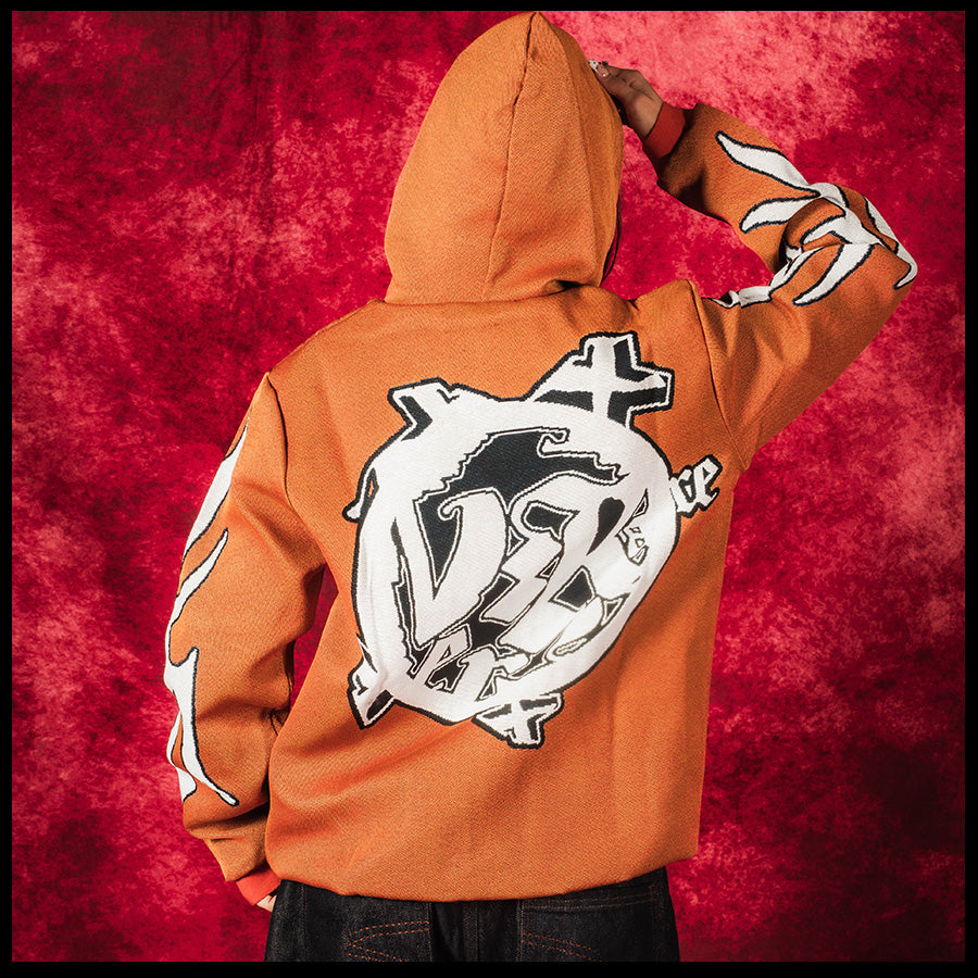 Tech specs: premium jacquard woven tapestry fabric (410gsm polycotton), embroidery (on hood), zip closure, 925 silver circle branded custom-molded puller, satin silk lining (inside *fully*), enamel-coated eyelets, tight-knitt’d drawcords (with compression/coated matte tips) | | | 100% wool ribbings @ bottom & sleeves (w/ intarsia logo at cuffs) ~