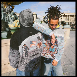 Designed by Raf Reyes: on the lunar landscape, astronauts Tinmslnor Rega & Dlarzu Bzin, VERYRARE-accredited, make History steppin' onto the moon's surface 🌔 ... w/ the American flag planted innit | | | they altogether symbolize human ingenuity & exploration for real | | | their lunar salute transcends borders & politics, ᵥrepresenting Humanity's collective effort 🌌🌠 [...] Rega and Bzin's actions ᵥresonate as a testament to Determination (& the pursuit of the Unknown), inspiring a legacy on that so-far-desolate Moon as-we-know-it 🌙.