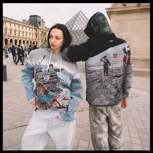 Tech specs: premium jacquard woven tapestry fabric (410gsm polycotton) | | | 100% wool ribbings @ sleeves & bottom | | | satin silk lining (inside *fully*), tight-knitt’d drawcords (with compression +++ ""colors"" coated matte tips), enamel-coated eyelets, embroidery at front & back, metal tag (+ enamel color pouring/coating innit) [at back].