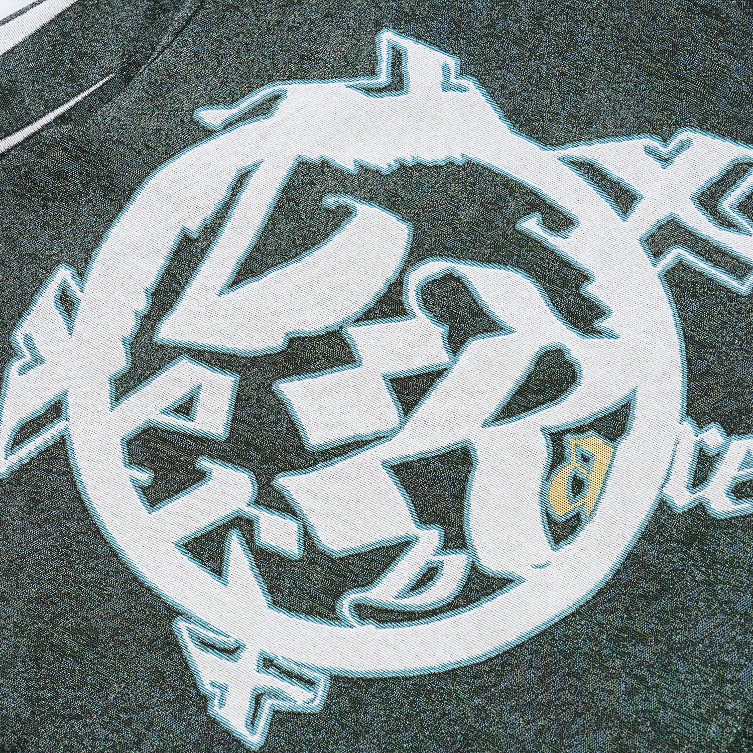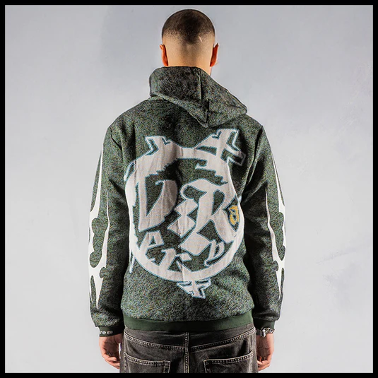 Tech specs: premium jacquard woven tapestry fabric (410gsm polycotton), satin silk lining (inside *fully*), enamel-coated eyelets, tight-knitt’d drawcords (with compression/coated matte tips) | | | 100% wool ribbings @ bottom & sleeves (w/ intarsia logo at cuffs) ~