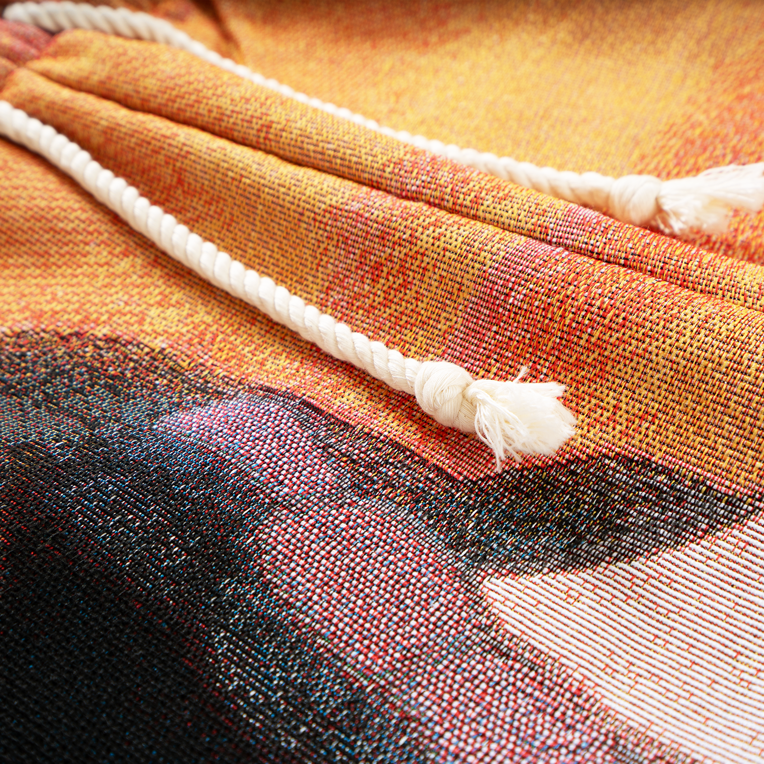 Materials: premium jacquard woven tapestry fabric (410gsm polycotton), mini "samurai" 'rope' braided belt-system drawcord +++ lining’s composition: 100% cotton.