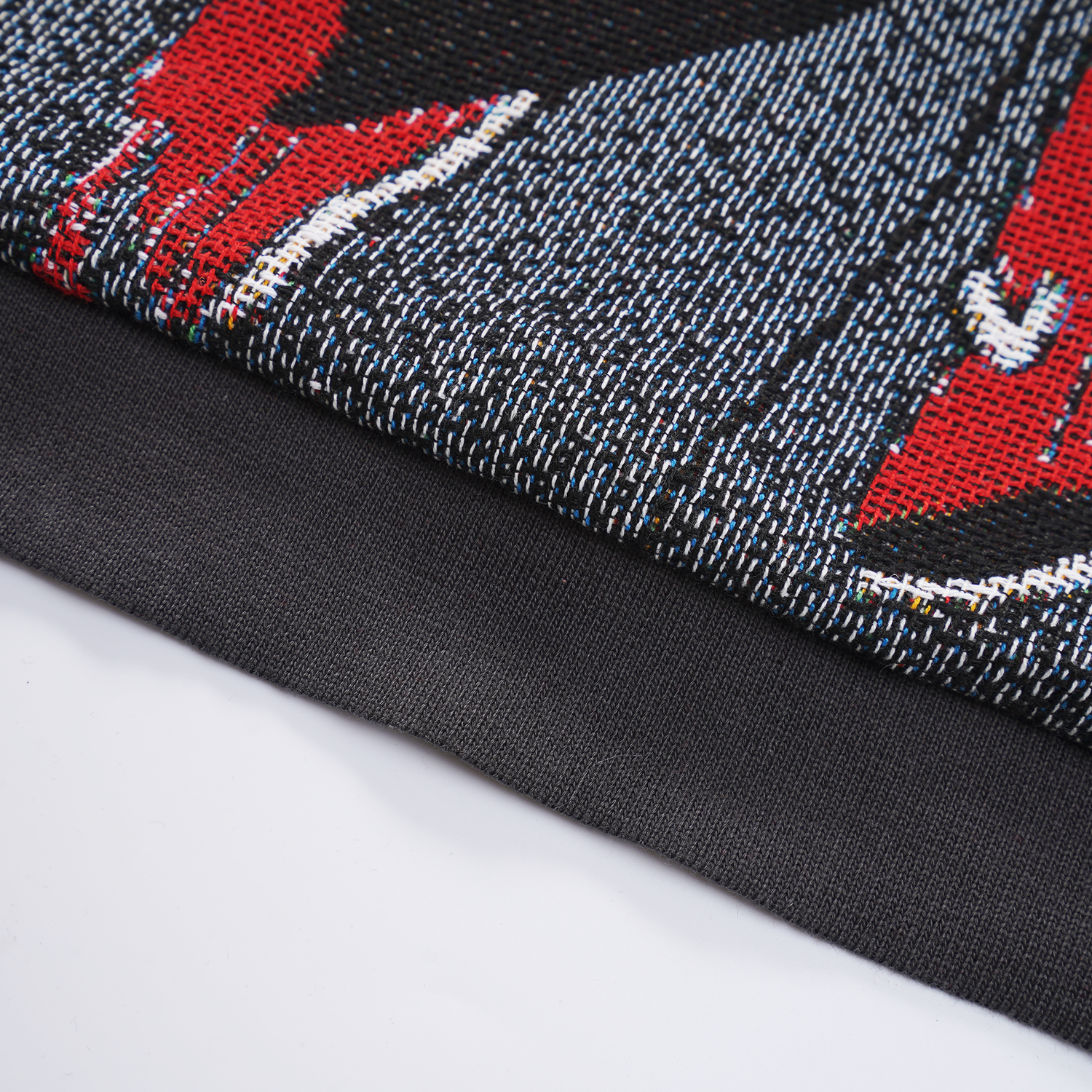 Materials: premium jacquard woven tapestry fabric (410gsm polycotton), modal (50% cotton, 40% rayon, 10% viscose) lining (inside *fully*), enamel-coated eyelets, tight-knitt’d drawcords (with compression/coated matte tips) | | | 100% wool ribbings @ bottom & sleeves (w/ intarsia logo at cuffs) ~