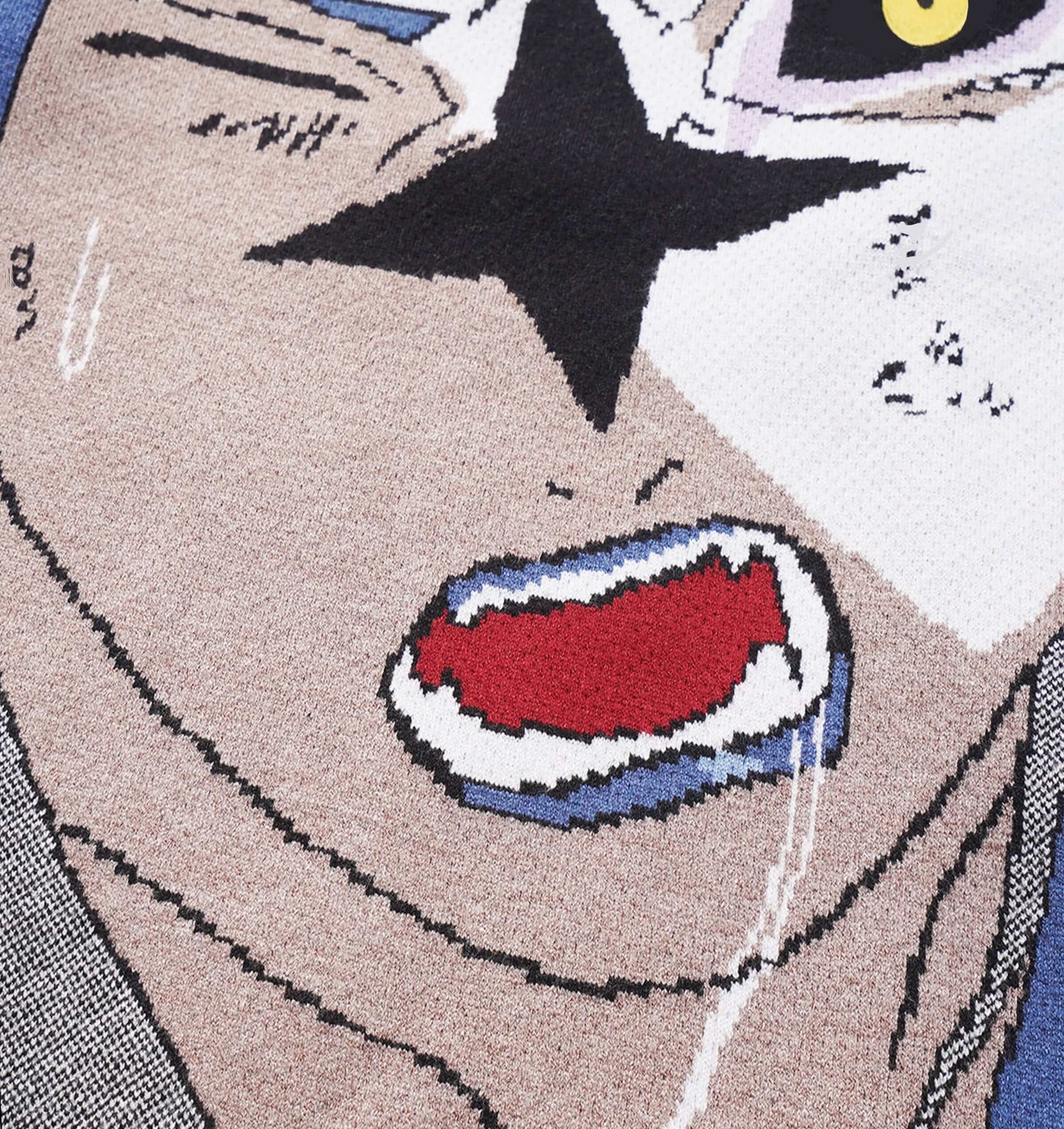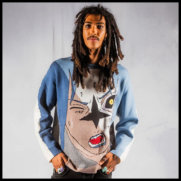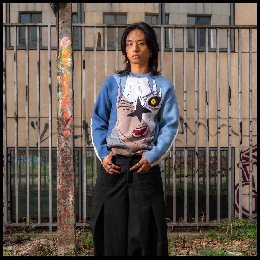 Tech specs: 14gg birdseye jacquard knit (composition: 50% viscose, 30% polyester, 20% nylon), embroidery.