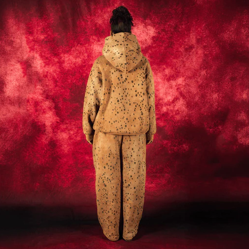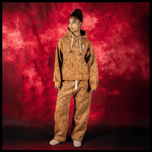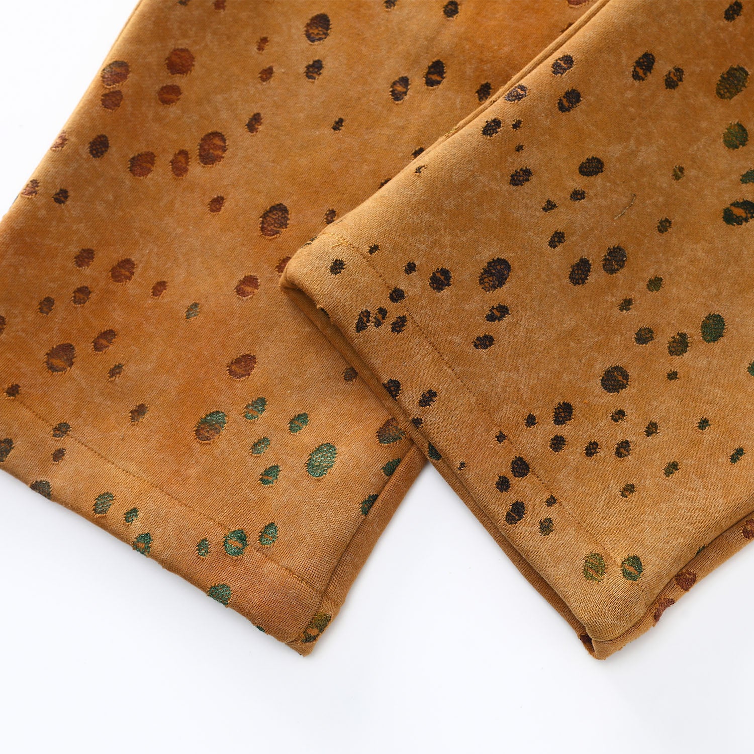Designed by Raf Reyes: sun-scorched and soul-dried [...] embroidered on the leg, a cathartic scene — skeletons writhing in agony beneath a blistering sun, bones piled like ᵥruins, caught in eternal unᵥrest ⇄ arid, cracked, cursed... u don’t wear these to survive the heat — u wear these to become part of tha wasteland‼️☠️🔥— VERYRARE for the damned & tha dustbound 😤.