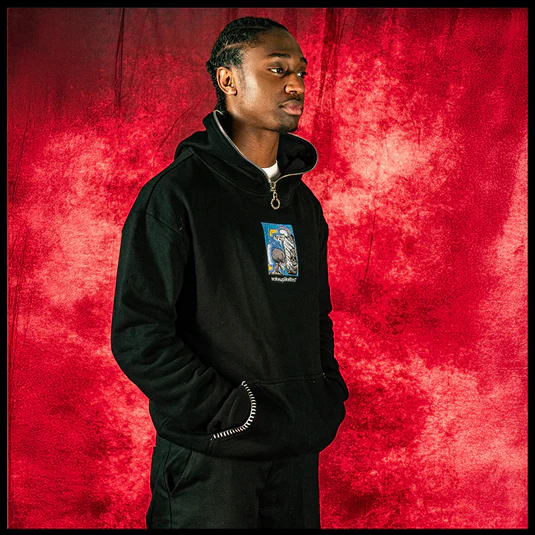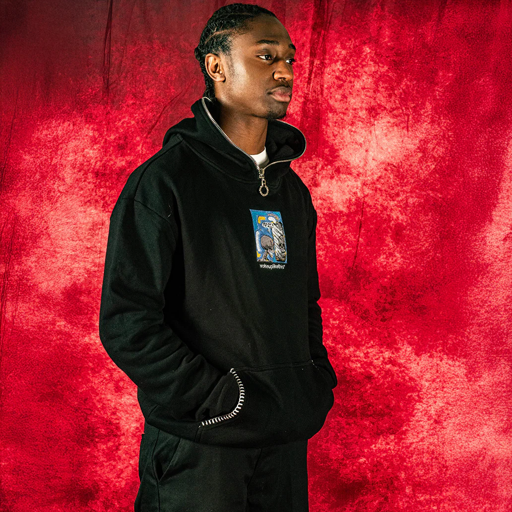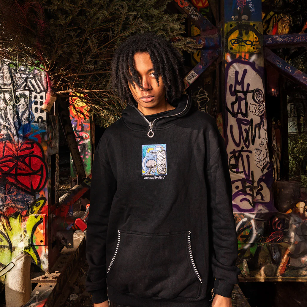 Tech specs: super soft 610gsm loopback french terry (100% combed cotton) fleec'd up on the inside, embroidery @ front, threadwork around kangaroo pockets | | | custom-molded enamel-coated clover (@ back], trademark'd zipper puller @ hood ~