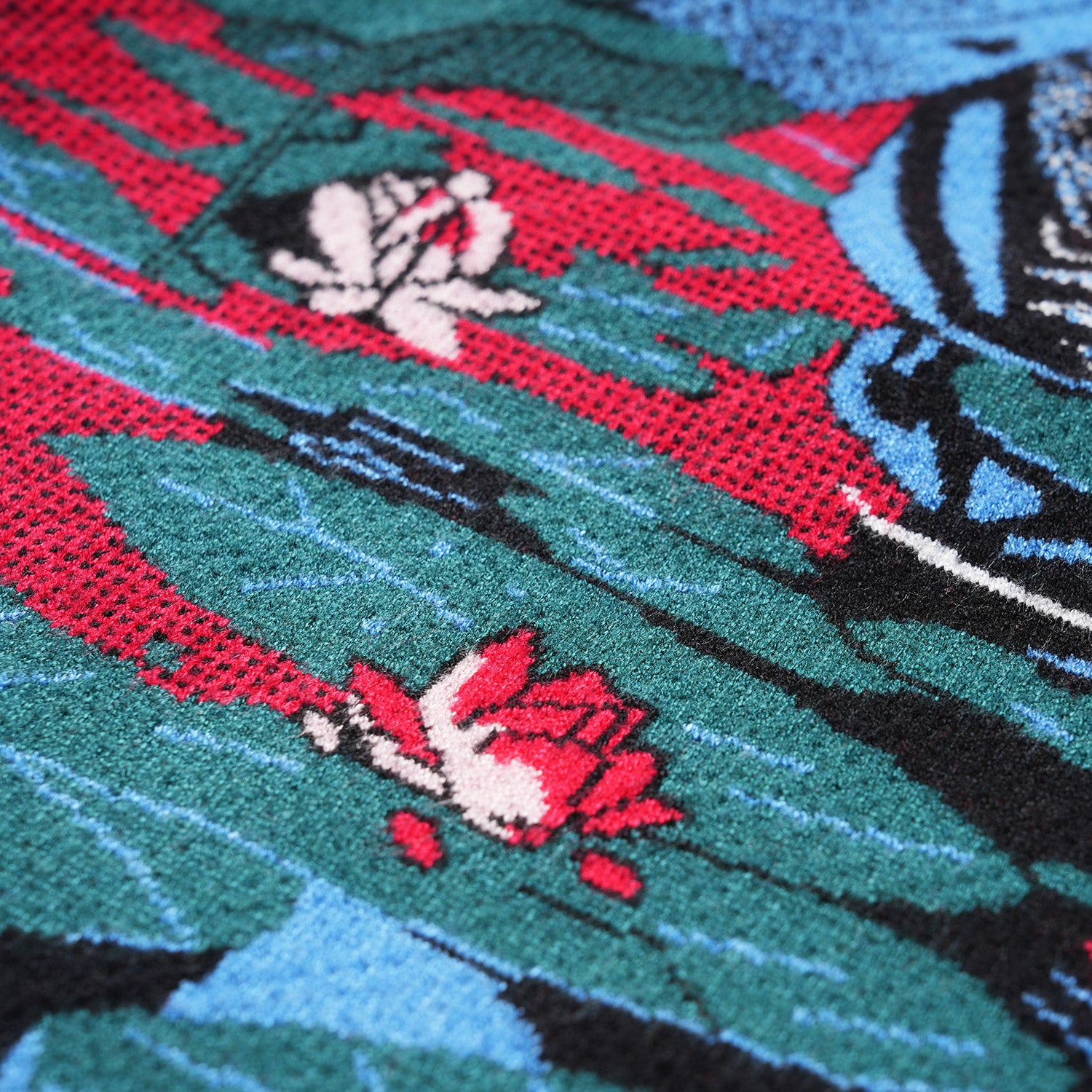 Tech specs: 14gg birdseye jacquard knit (composition: 50% viscose, 30% polyester, 20% nylon), embroidery + real leather appliqué'd with silver embossed-debossed 'Hell-&-Back'-patch (+ tonal thread'd contour'd), tubular/tonal hems.