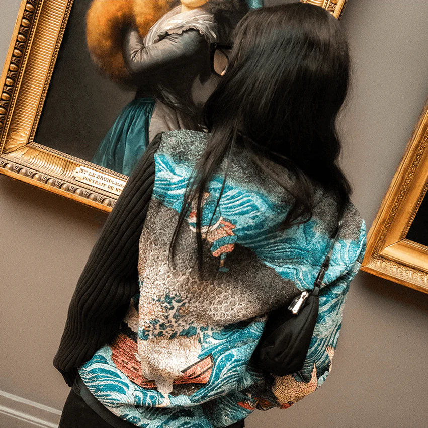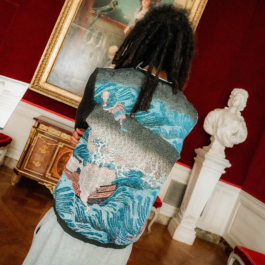 Tech specs: premium jacquard woven tapestry fabric (410gsm polycotton), metal-enamel-leather patch at front | | | 100% Merino wool (hand-dyed) left sleeve + ribbings 🐑 | | | lining’s composition: 50% cotton, 40% rayon 10% viscose (for ultimate softness & dopeness 🧶)...