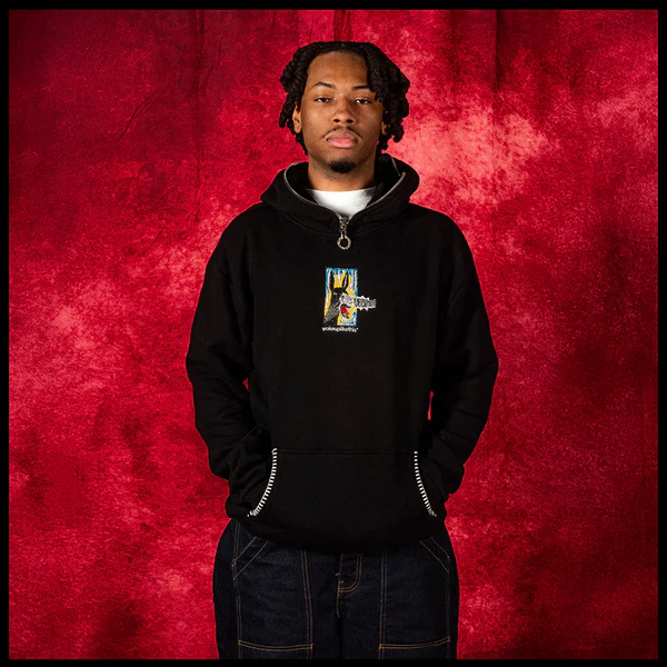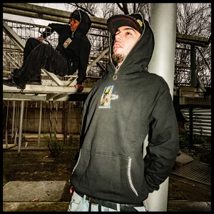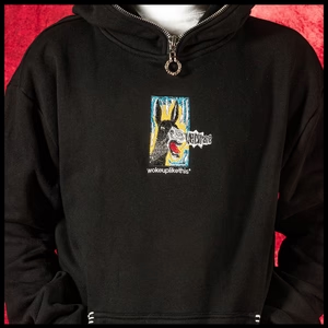 Tech specs: super soft 610gsm loopback french terry (100% combed cotton) fleec'd up on the inside, embroidery @ front, threadwork around kangaroo pockets | | | custom-molded enamel-coated clover (@ back], trademark'd zipper puller @ hood ~