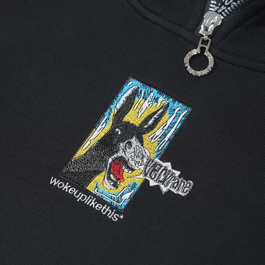 Designed by Raf Reyes: a donkey, wide-eyed and howling in shock, framed by jagged red lines of sheer disbelief ⇄ ""wokeuplikethis"" hits differently here :: the surreal terror of ᵥrealizing you’ve turned into something you never expected, a walking punchline in a world gone wrong 💬 👁️🗨️~ its open mouth and crazed expression scream panic and confusion, like the ultimate ""bad hair day"" but on a whole other level 🤪... this is a nightmare selfie moment (but made ironical), where waking up isn’t just ᵥrough, it’s a full-blown existential crisis — an absurd twist on identity gone wild.